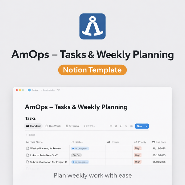 AmOps — Tasks & Weekly Planning (Notion Template)